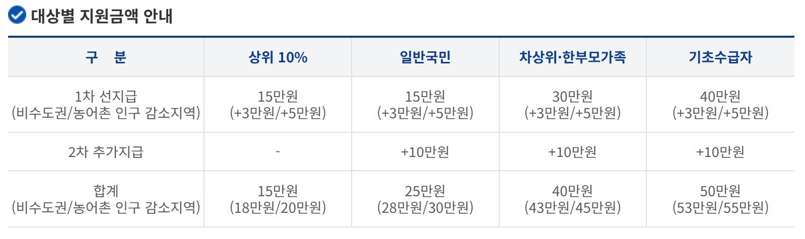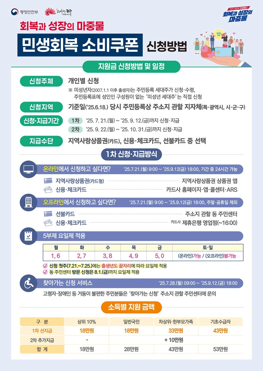 1인당 15~55만원, 소득별 맞춤형 지원 및 단계적 지급