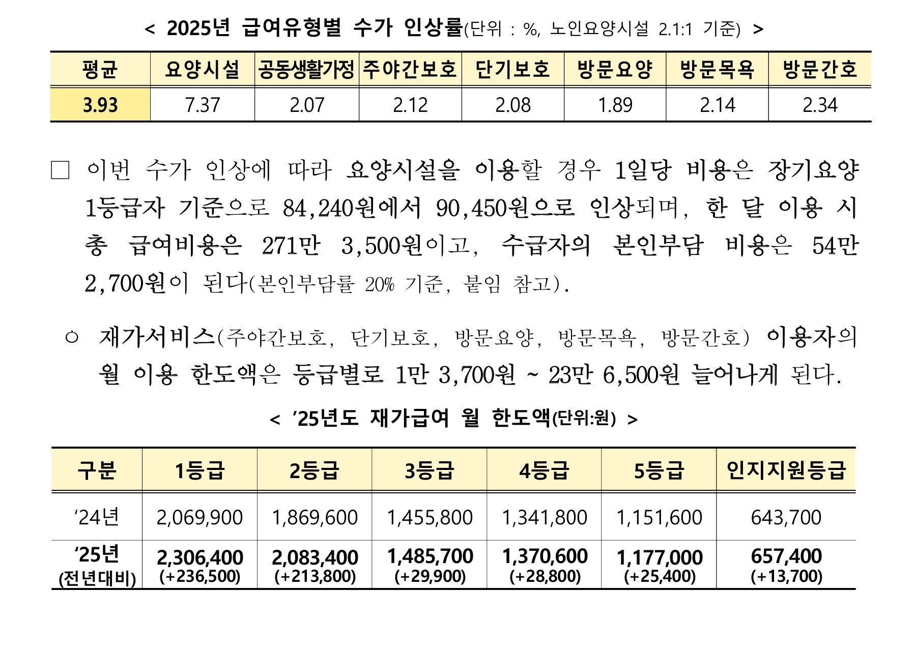 * (1등급) 기존 2,069,900원 → 인상 2,306,400원(2등급) 기존 1,869,600원 → 인상 2,083,400원